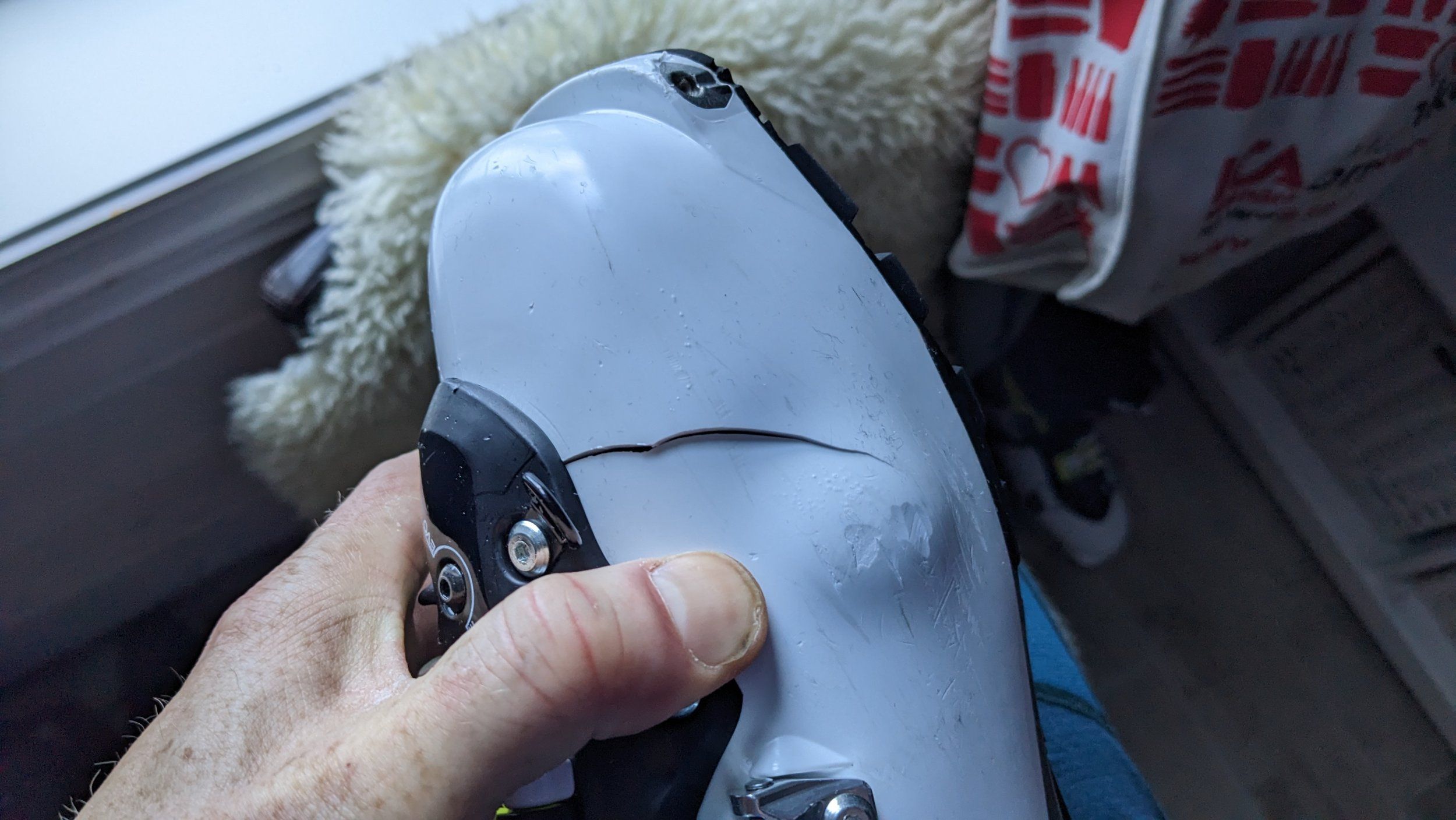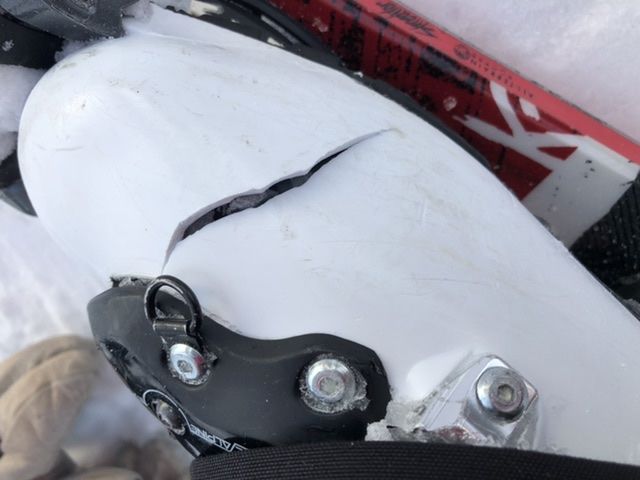 Även min vänstersko sprack sent på våren -23. Då hade de närmare 200 skiddagar under bältet. Köptes hösten 2017 på Alpint så jag gick till Alpingaraget och fick förstklassig hjälp. De hanterade hela processen inklusive tryckningar av den nya underdelen.