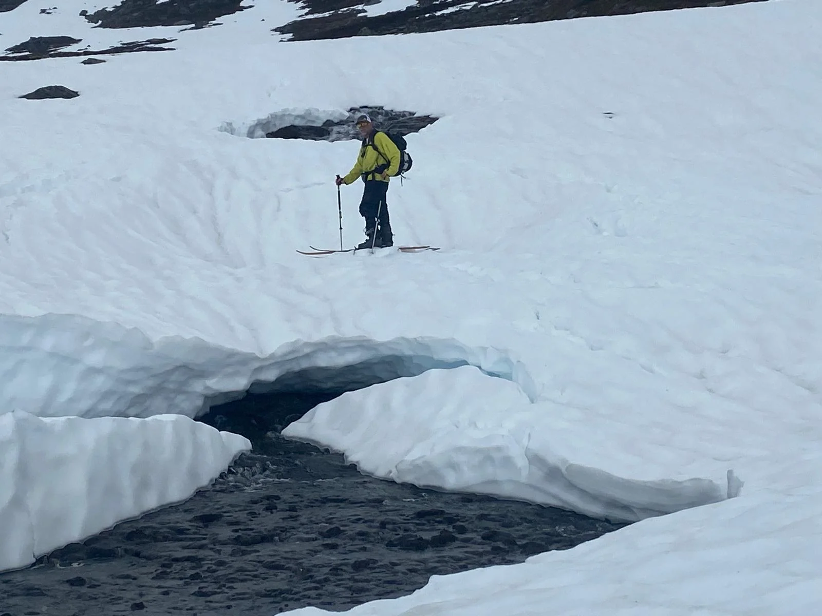 Fick två turer till Alnestinden på min toppturs ferie i tropisk värme. Konstig säsong, dålig vinter men eftersom våren var så kall är det ovanligt mycket snö i fjällen. 7-10 minuter i lätt terräng till snön om man gick rätt. Rätt bra snö på andra turen då det inte var stekande sol. (Väldigt mycket folk i Trollstigen när den öppnade, var helt stopp 30-60 minuter sista gången jag skulle ned).