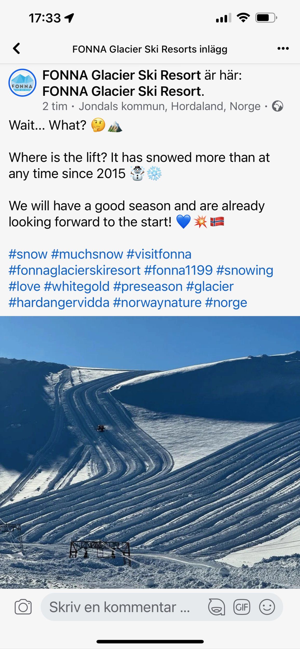 Fick upp denna i flödet, jäklar vad snö .. räcker kanske till Juni :cool: