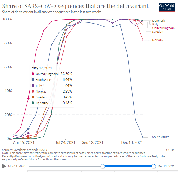 1. Den nuvarande "smittvågen" utanför Sydafrika är (ännu) främst orsakad av delta-varianten. T o m i Norge. Ännu. Här tycker jag att media ger en helt felaktig bild.