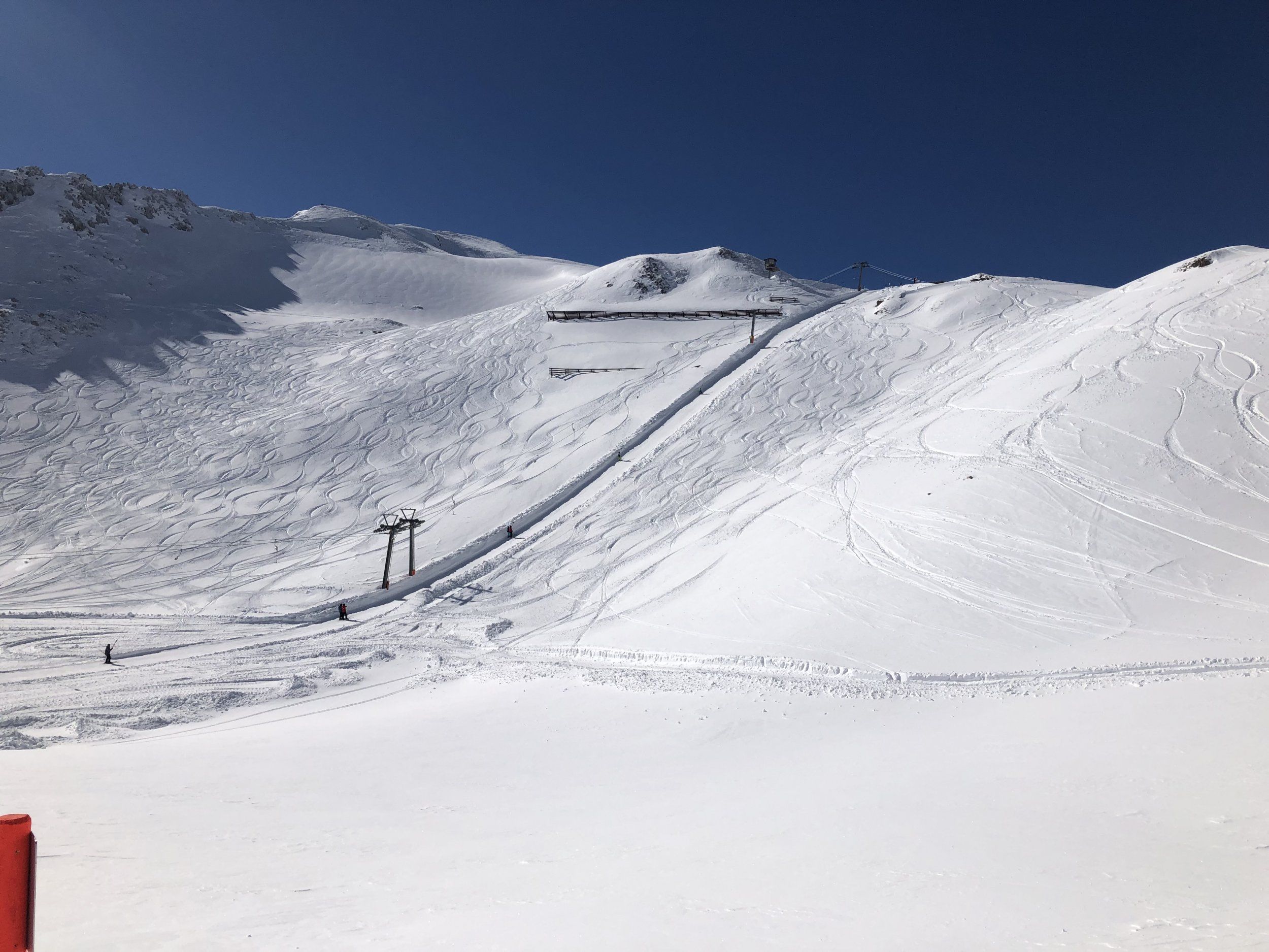 Njae… modernt liftsystem med långa nerfarter, men… de röda pisterna borde vara blå, och de blå känns som transportsträckor. Och pisterna är fulla av ovana skidåkare med dyra skidkläder.