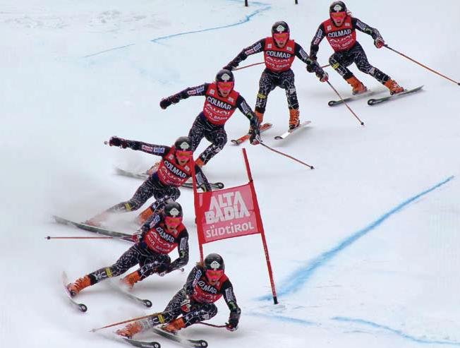 Hur tight man svänger avgörs av hur stor centripetalkraften är (kraften vinkelrätt mot åkriktningen). Den kan inte bli så mycket större än när man kantar så att höften ligger i backen. Om den skulle bli större kan du inte längre hålla kroppen nere alt. skäret släpper. Om du ser att du ligger alldeles för sent i linje, bryter loss skäret sent i svängen så driftar du ut, sänker farten och när farten väl är sänkt kan man börja svänga tightare för att ta sig förbi nästa käpp. Om du råkar göra detta i en endaste port kommer du att hamna långt ner i resultatlistan.