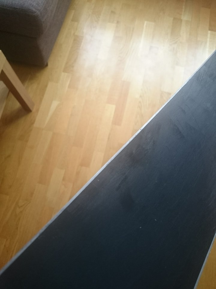 Min tanke är att räta upp stålkanten och sedan skruva fast den. Efter det skära ut en "ren" bit av belaget för att underlätta senare tillpassning av nytt belag. Sedan försegla kärnan med oförtjockad epoxy. Efter det tänkte jag bygga upp sidewallen med förtjockad epoxy. Nästa steg skulle vara att slipa av skruvskallarna, rugga upp epoxyn på belagssidan och passa in det nya belaget som jag limmar fast med epoxy.