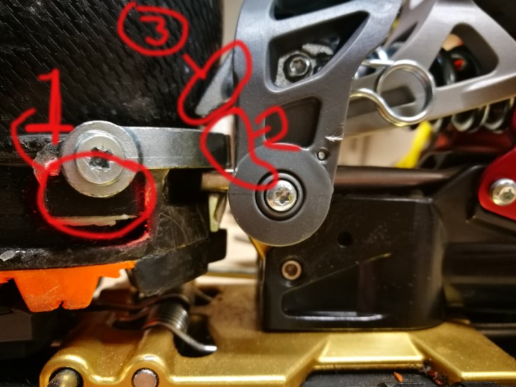 Skulle justera glappet (NR2 på bild) idag, som skall vara "ett papper" stort. Det minsta jag lyckas få det är ca 1-1,5mm lr så. Sen tar "styrskenorna" i (nr 3 på bild). Har läst att det finns icke-beast-kompatibla-pjäxor, jag var tillsynes lite snabb att anta att det var pga att det inte fanns nånstans att skruva "beast bygeln" (nr 1 i bild) som jag moddat med lite skärbräda för att ha nått att skruva i. Men det är alltså "styrskenan" som är det stora problemet i kompatibiliteten?