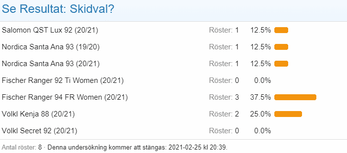Lurar på skidor i födelsedagspresent til min bättre hälft. Har smalnat ner det till följande modeller som finns på tillbud: