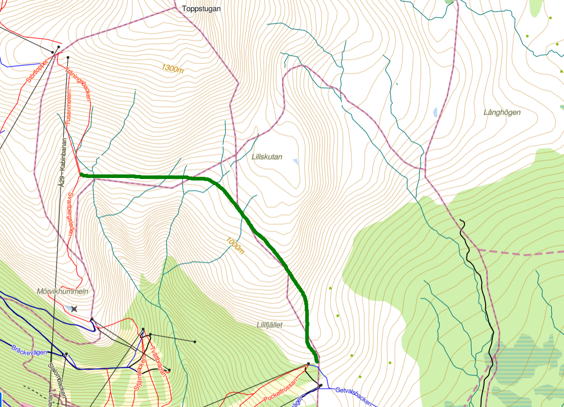 - Nedfart mellan Högåsliften och Tott samt lite liftar på toppen av Sadeln