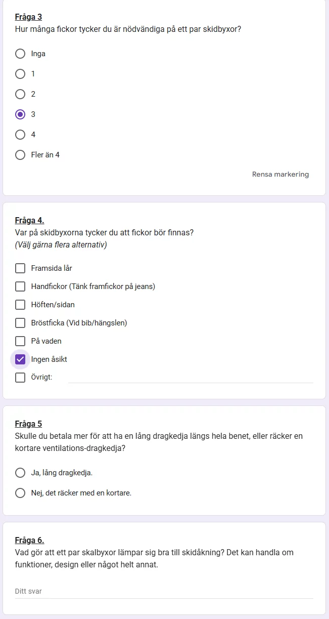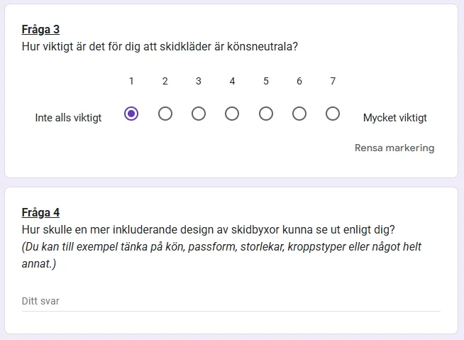 Jag förstår inte heller denna undersökning med frågor om hur man gör ”skidbyxor inkluderande”?