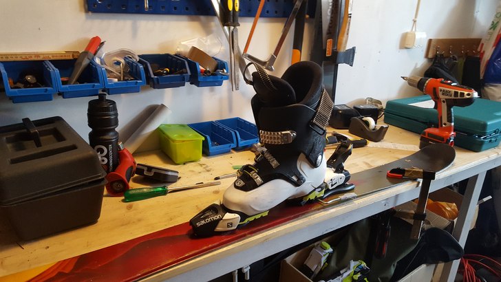Slipat till hälbygeln för beast bindningarna så att de ligger i höjd med pjäxkanten. Ska teståkas i Cham nästa vecka, får se om de sitter fast i alpinbindningar som de ska nu.