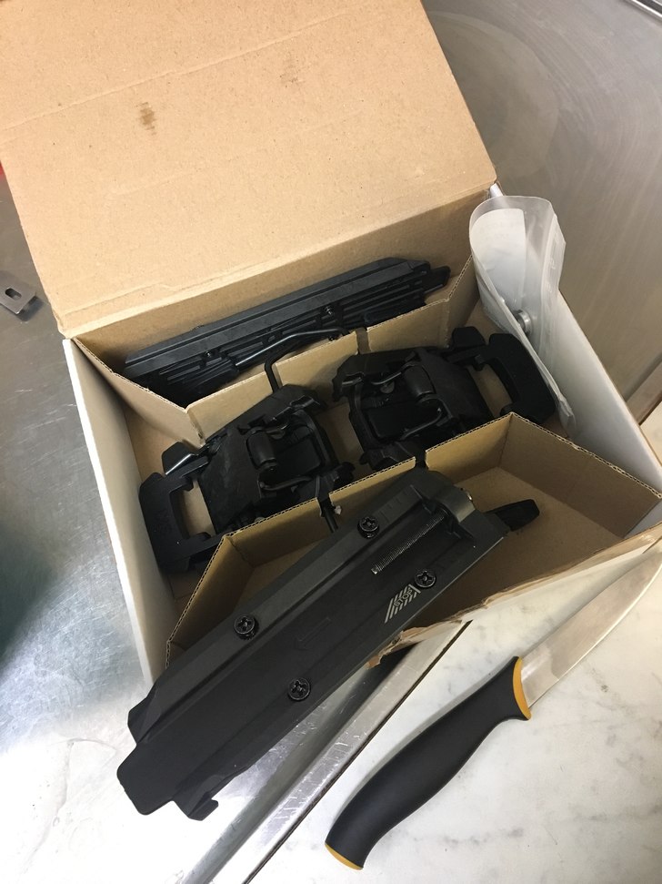 Där kom äntligen paketet jag väntat på. Extra bromsar men också det viktigaste, en extra uppsättning monteringsplattor för häldelarna och ett extra par ”tåskruvar” till Shiften. Nu ska de monteras på nya paret skidor också :)