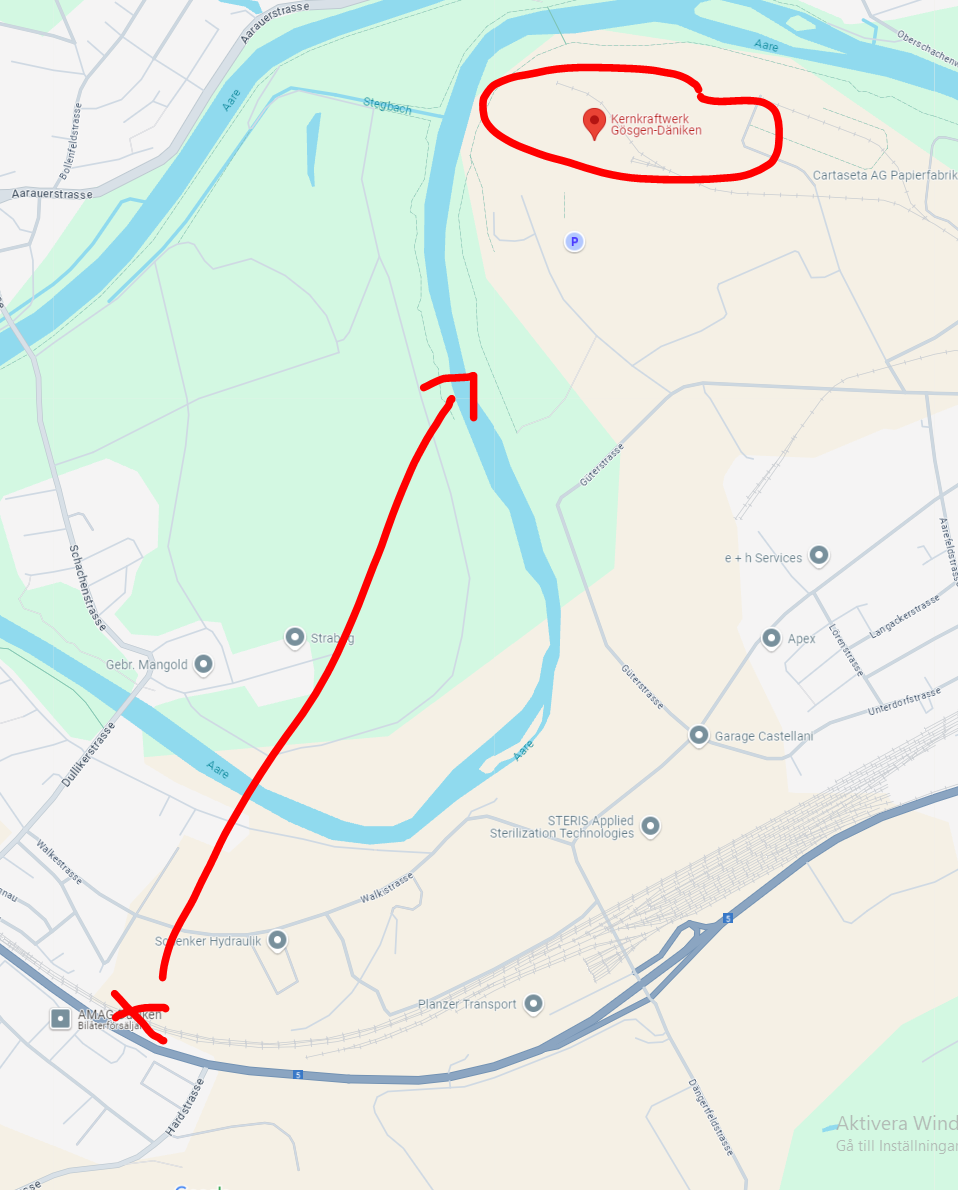 Ja, Gösgens kärnkraftverk som syns. Mühleberg stängt, men tre ligger kvar längs Aare och Rhen. Byggarbeten så jag fick åka en omväg via Aargau till Zürich i söndags.