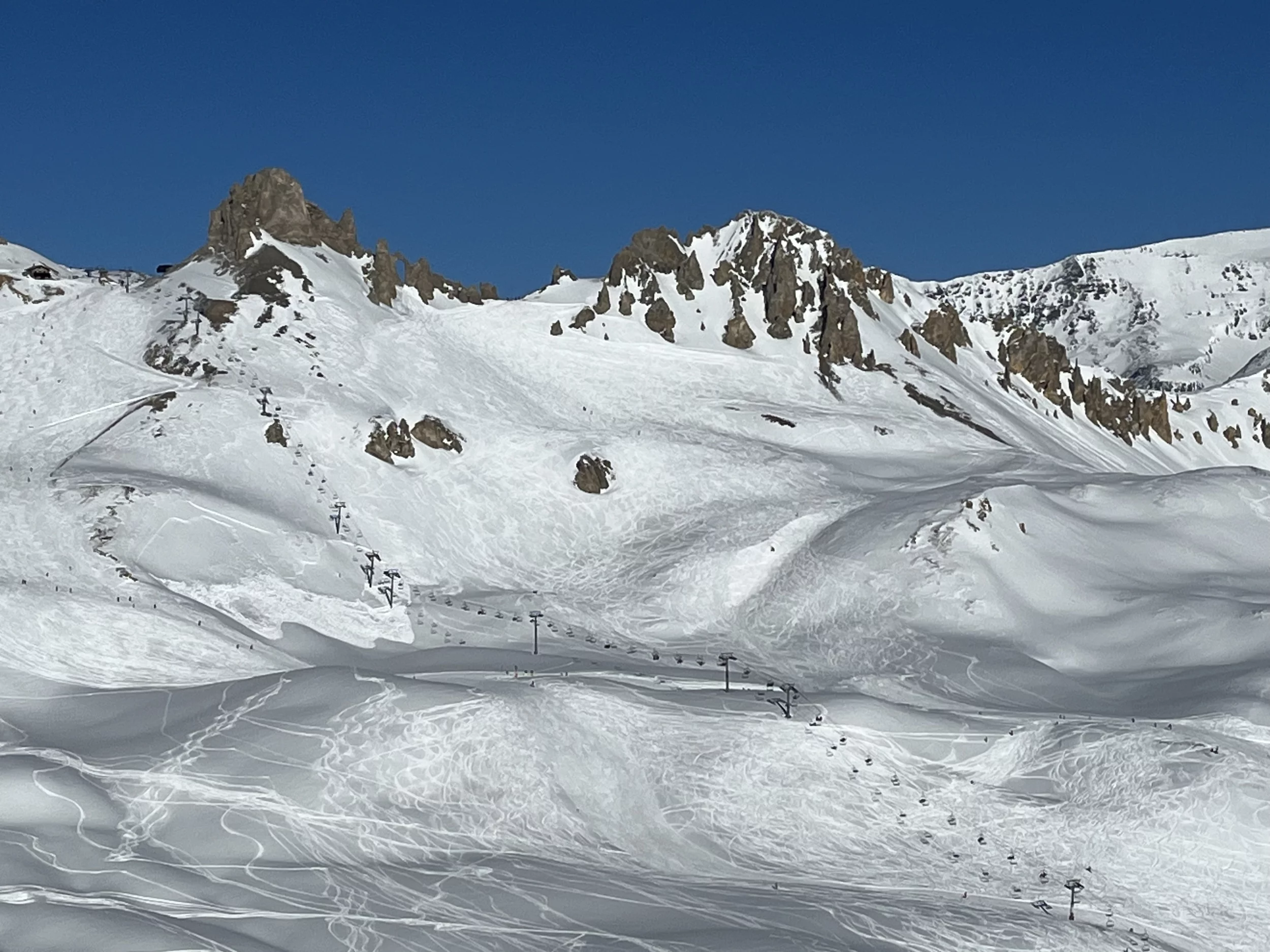 Vet i tusan om jag får ihop det, och alldeles för lite spår… men pisten där nere får mig att tänka på Gemsstock i Andermatt.