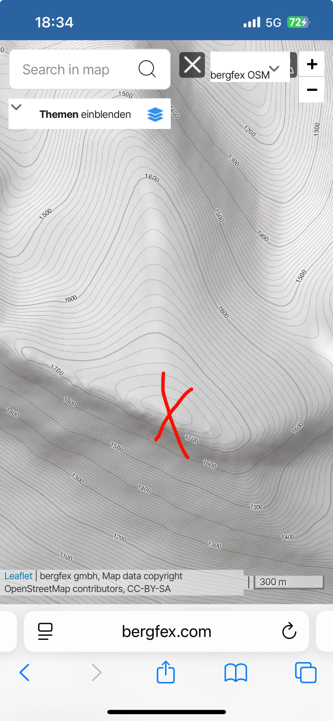 Har tagit ut vinklar i bäring och höjd på mobilen och kommit fram till att det borde vara den här toppen som är drygt 1750m hög.