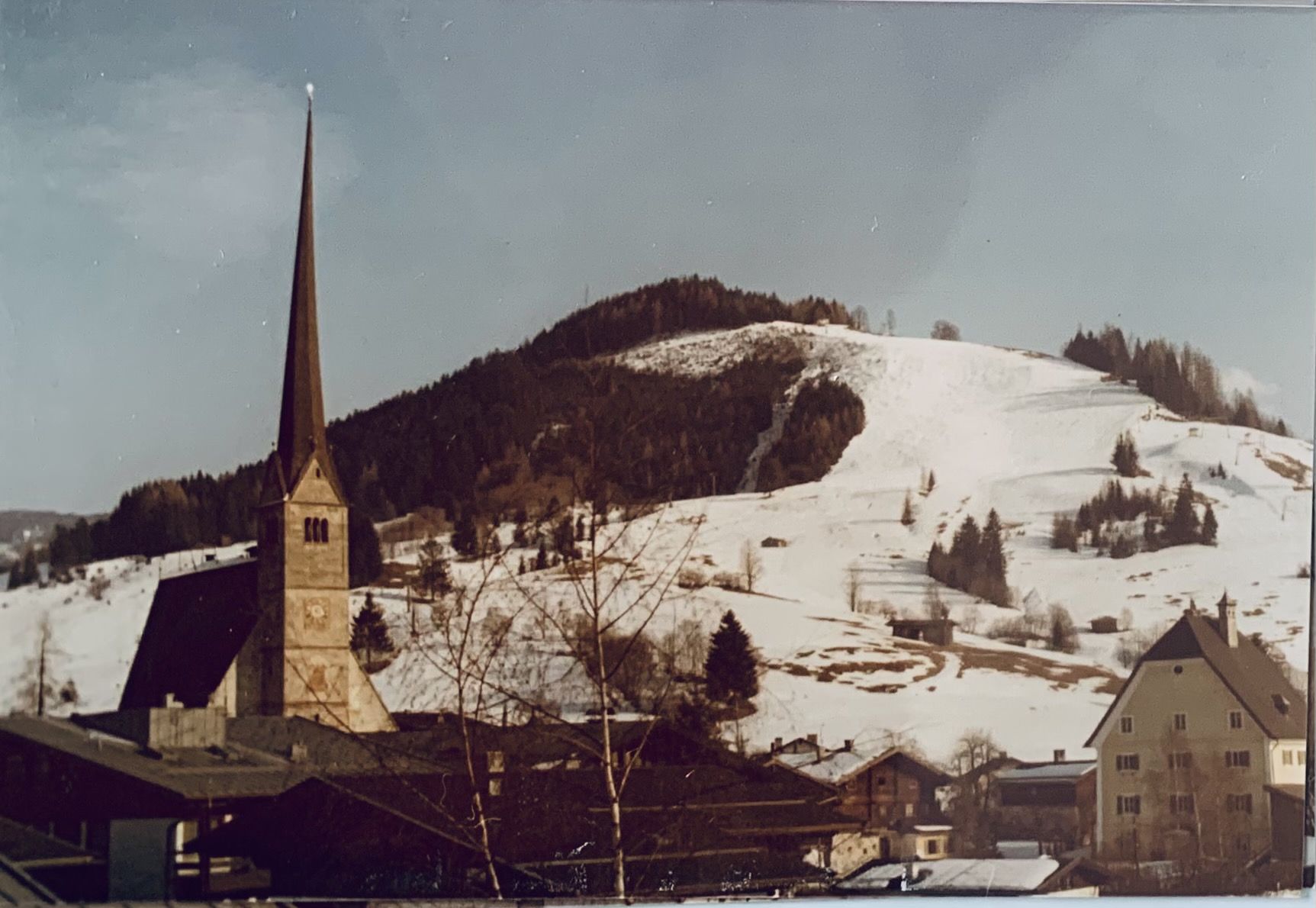 Ja Maria Alm är ju verkligen känt för sin... kulle.Hehehe...... faktiskt på berget/kullen. Har tidigare spanat in Maria Alm / Dienten lite grann och tyckte kullen påminde om stället. Snabb googling så dök stora huset upp - och kyrkan. Men jag gissade du klippt ut kyrkan. så....