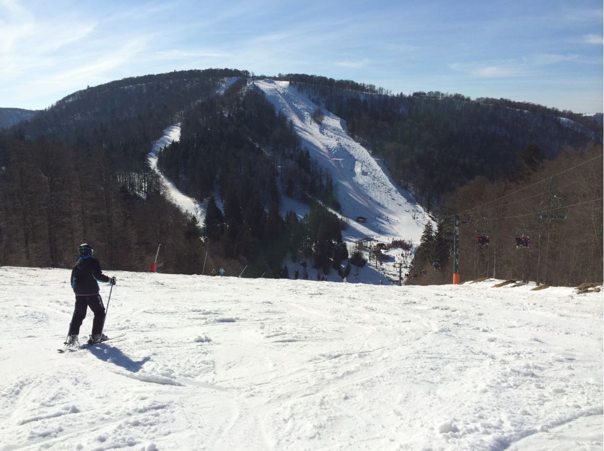 Skidområdet ligger ca 50 km därifrån och det tog en knapp timme att köra dit på morgonen.
