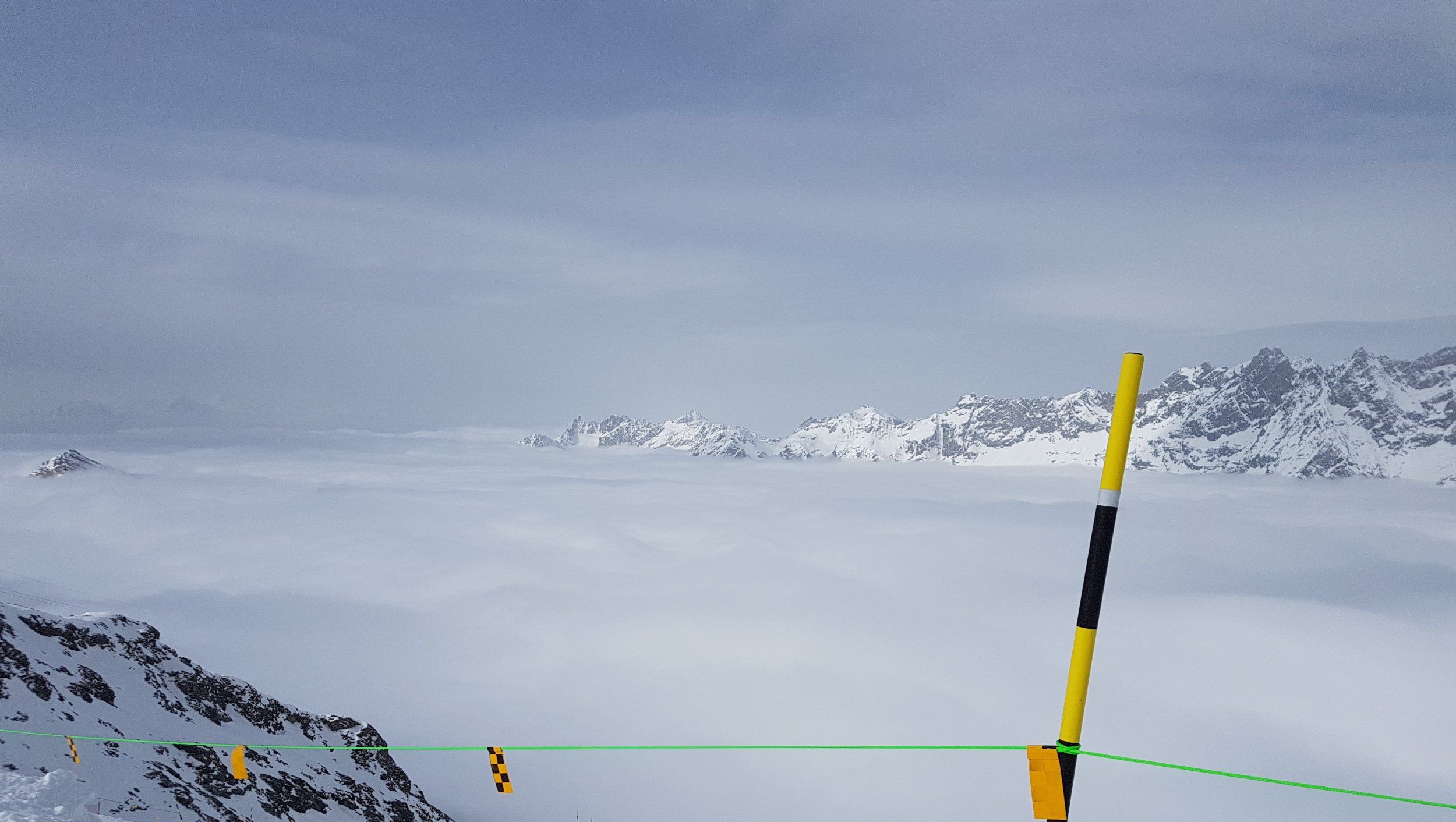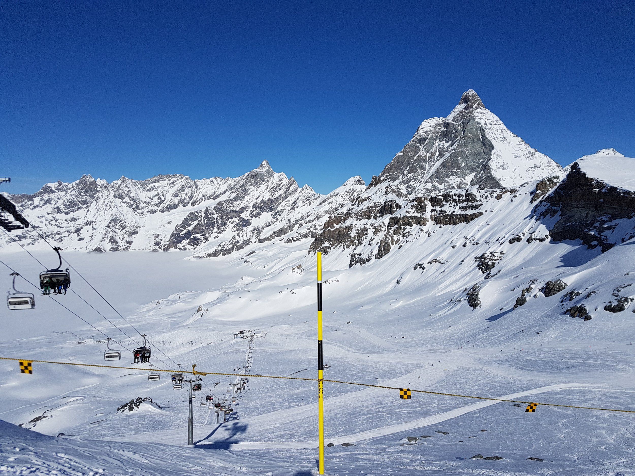 Risk att du stod i Schweiz och tog bilden då...Du har helt rätt, vi har vänt Schweiz ryggen och tittar ned mot Cervinia i mjölken. Men lite petnoga tittar jag upp mot Testa Grigia och Plateau Rosa (1:a bilden nedanför) från Theodul Pass men det var ju ändå 1½ rätt av 2, vilket blir godkänt. Hade jag tagit bilden (nr 2 nedan) från dagen före hade väl alla tryckt på knappen inom en minut...