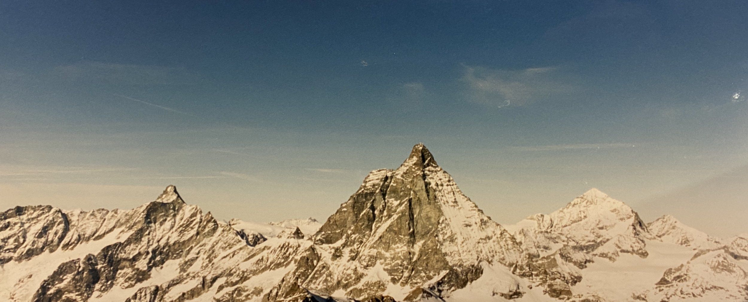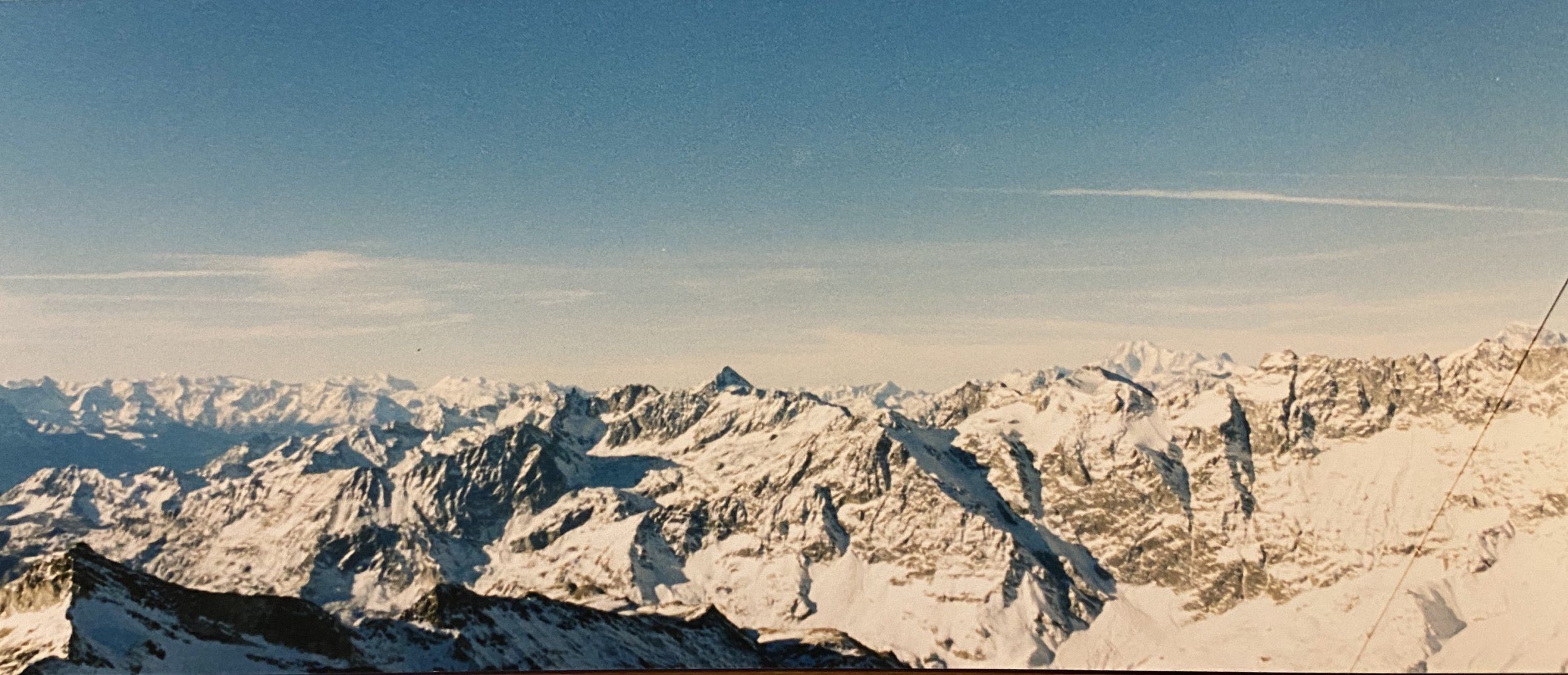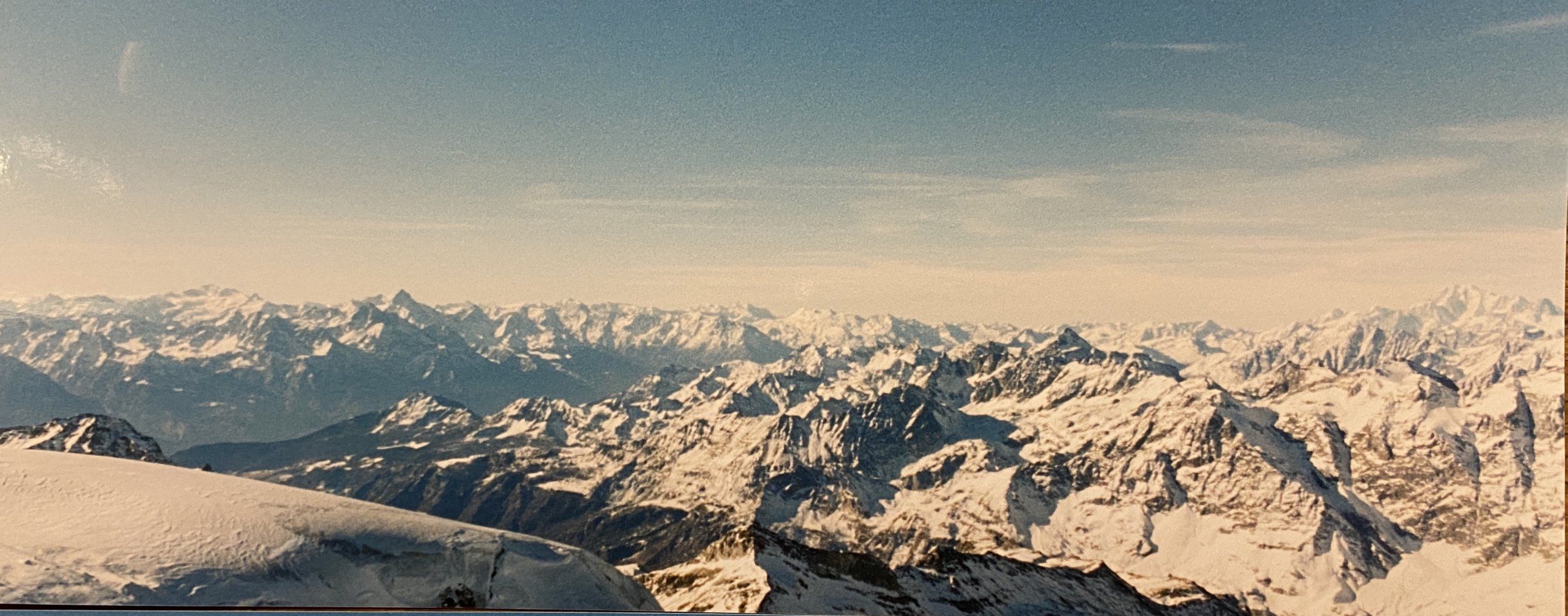 Försöker kolla vad det kan vara för toppar. Tror det kan vara Lenzspitze (4293 m) i mitten, Schwarzhorn (3618 m) till höger. Till vänster Dom (4545 m) och Grand Gerdame (4467 m). Lovar inget... ;)