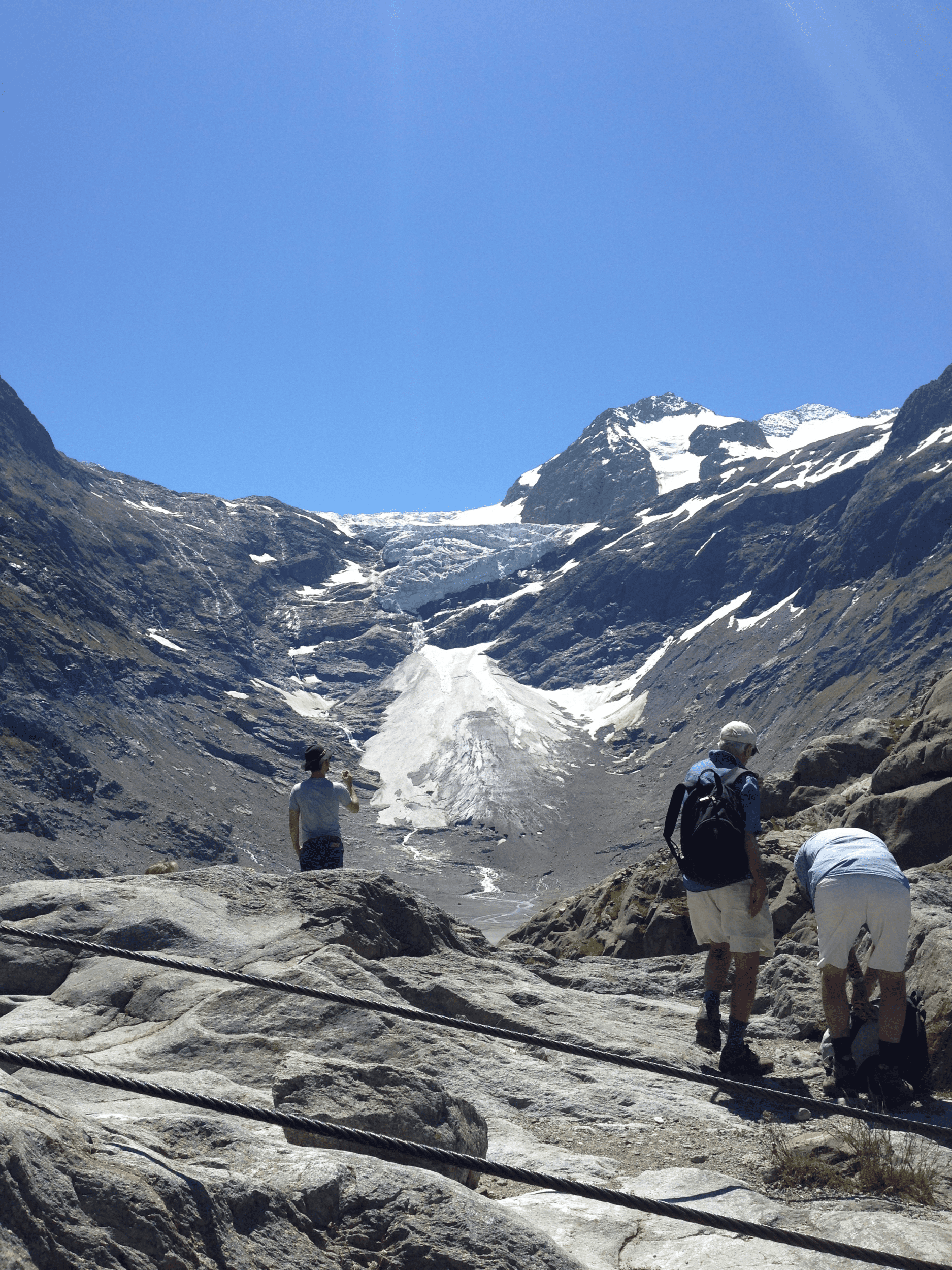 Bron byggdes pga att Triftgletscher smälte bort och då försvann vägen till Trifthütte. Så här såg glaciären ut när jag var där 2014, ursprungligen gick glaciären ända fram under bron!