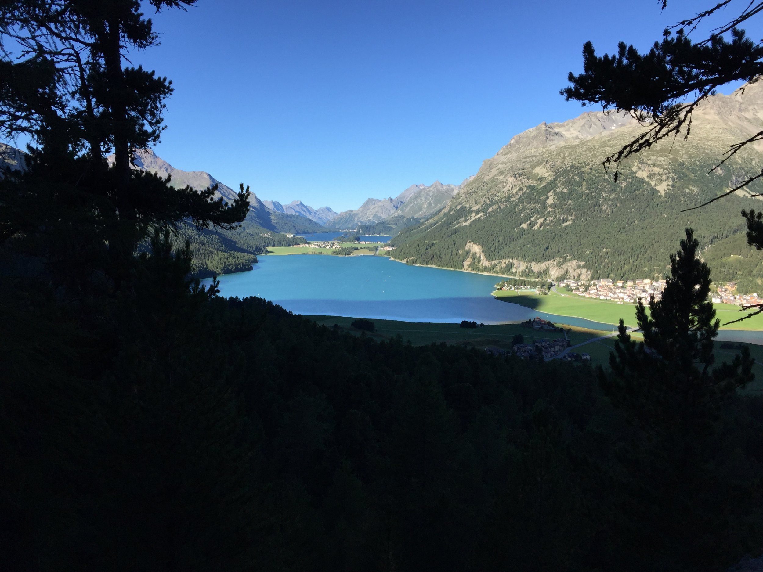 Kan det vara Silsersee och sen Silvaplanersee som till höger övergår och blir Lej de Champfèr?