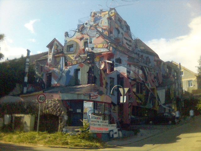 Huset ser ju ut som om det skulle vara av Hundertwasser, men hittar det inte i hans "katalog"...