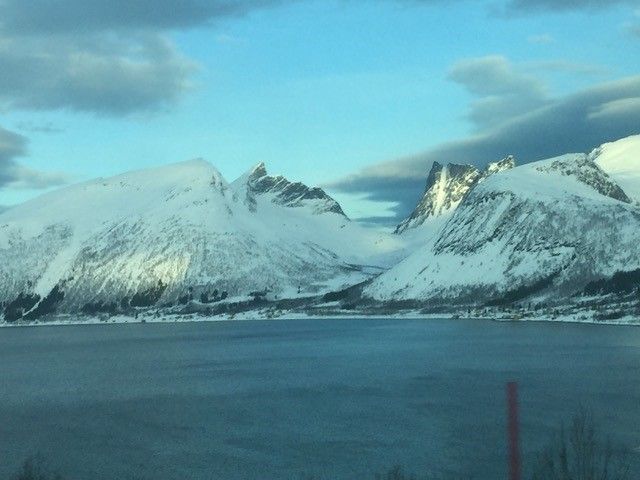 Alldeles riktigt, där satt den! Luttindsrännan på Luttinden här från andra sidan Nordfjorden.Senja. Luttinden kanske? Fräsigt åk i alla fall. Utsikt mot Bergsbotn och Bergsfjorden