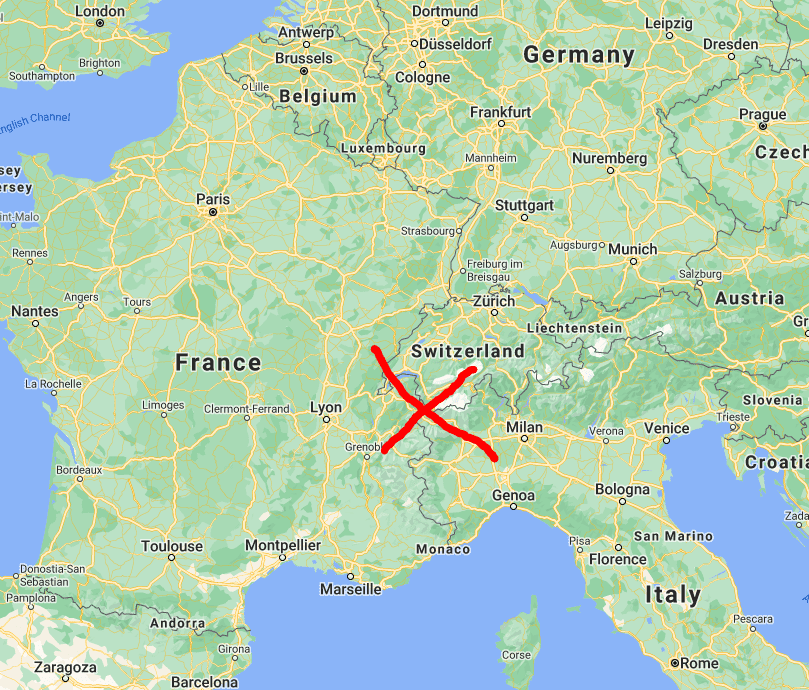 Du är rätt ute med din kartbild 😁 Om jag säger att bilden är tagen mot Schweiz hållet från var jag står borde de vara rätt lätt 😅 Speciellt om jag säger att vi turade upp i dalen på andra sidan berget. Vi turade aldrig med vy mot dammen.