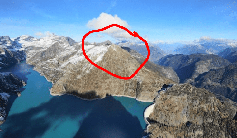 Nånstans på denna mkt inzoomade bild finns berget. Lättare blir det inte 🌚 Bara markera rätt topp, räcker så