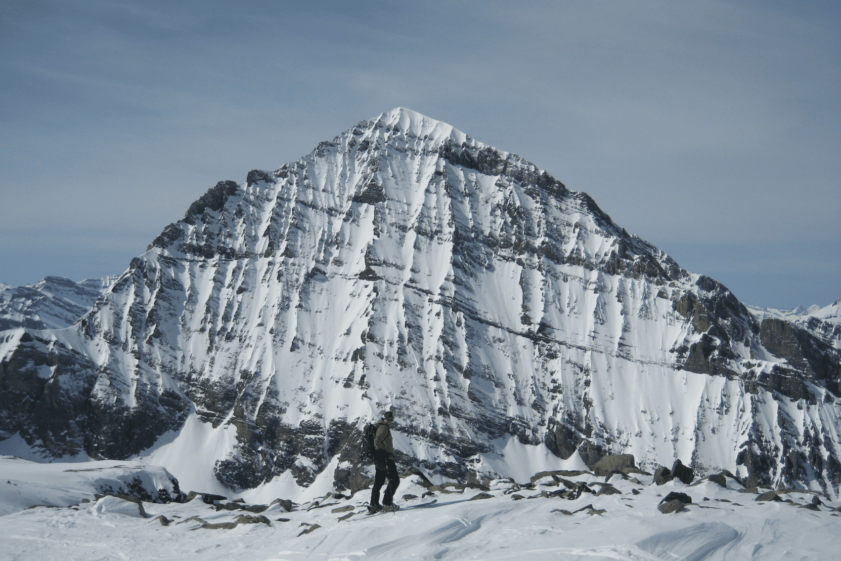 Här har vi då det lodräta Lärmstange från en annan vinkel. Om snöläget är bra, så finns det här lite ski-route möjligheter för dem som gillar sådan åkning.