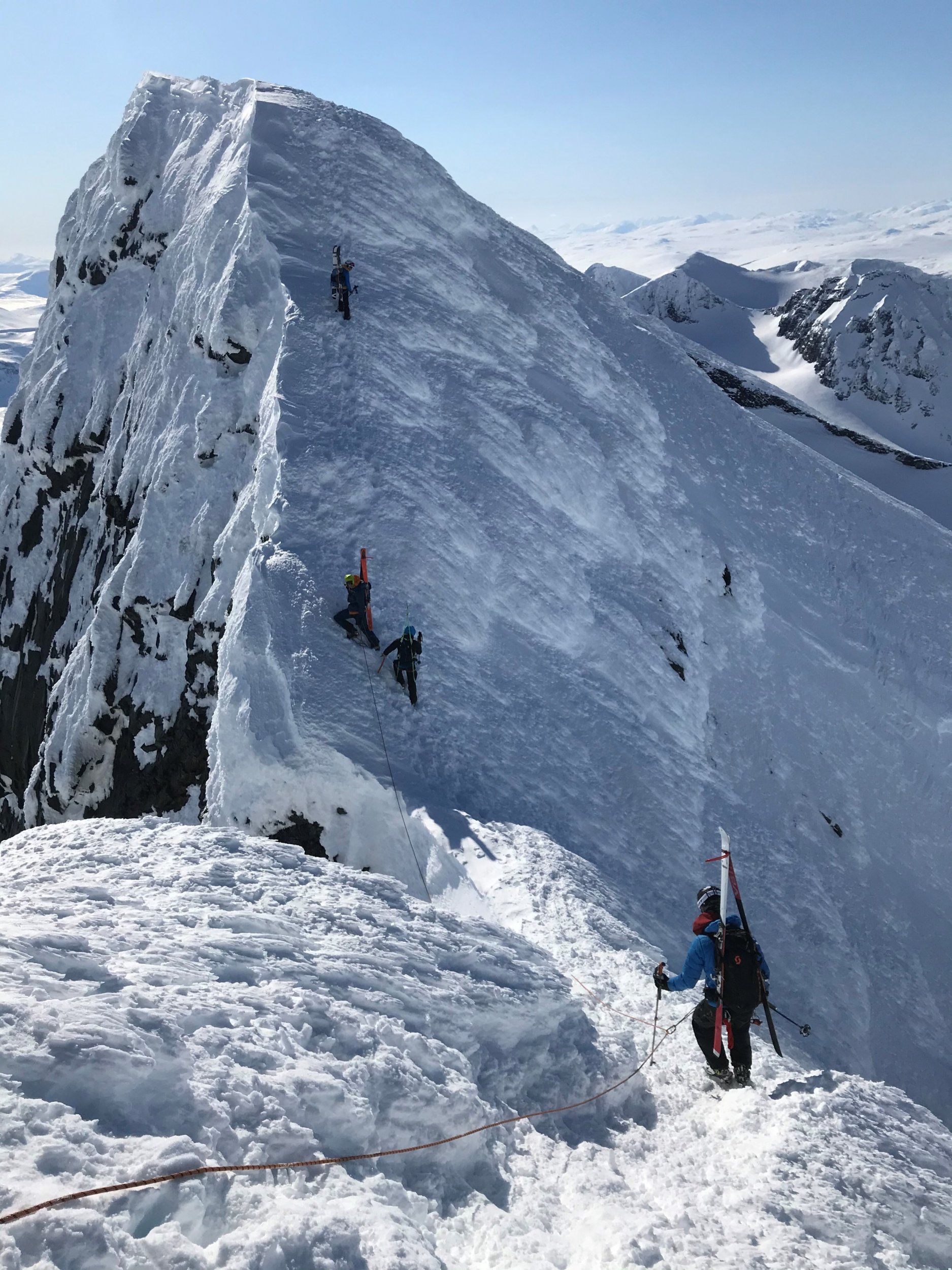 Egentligen bara den sista biten upp längs toppkammen som är riktigt luftig och kräver att man går till fots, resten av resan upp kan göras med skidor på fötterna. Men lite äventyr blir det ju.