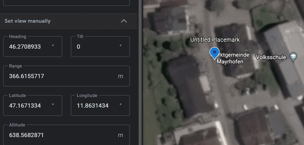 Aj aj aj…. har @fredw blivit orättfärdigt bortdömd på sin seger?Jag tror inte att Mittlere Grinbergspitze syns därifrån, det gör däremot den närmre men lägre Vordere Grinbergspitze (som skymmer Mittlere) på ca 2764 möh. Och enligt Google Earth ligger just den platsen på gatan på 638 möh. Men whatever, jag har ingen bra bild att visa..!