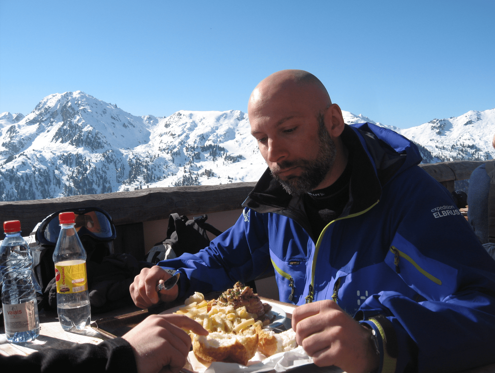 Men var sitter du och äter?Jajamen, Mont Gond är det. Har haft berget med tidigare, men tror inte det var denna bild dock..? Berget står ju titt som tätt värd för freeride-tävlingar.