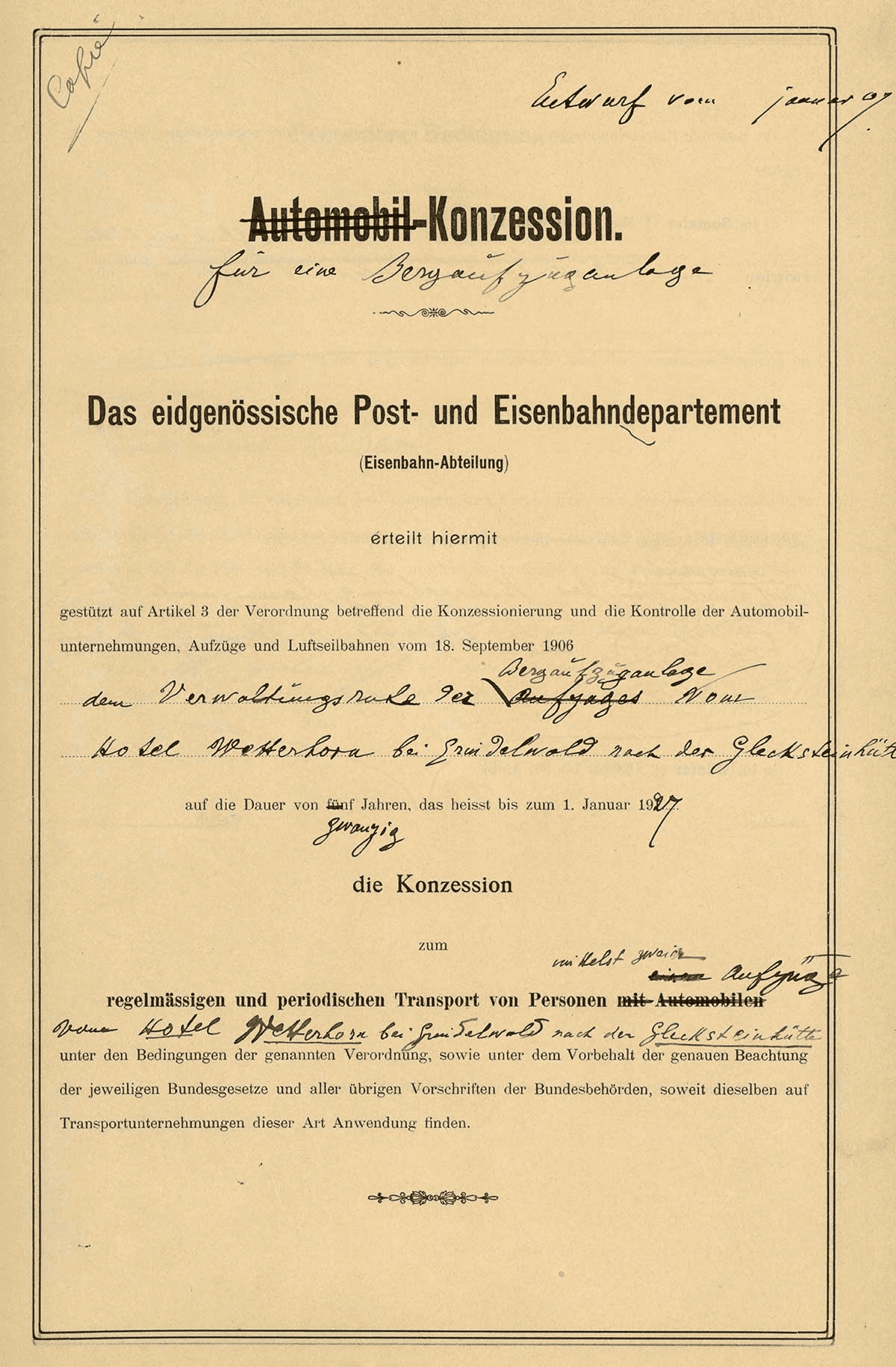 Festligt med formuläret måste jag säga, bara strukit över och anpassat efter behovet. Första kabinbanan i Schweiz, 1905! Stängde 1915 pga inga turister under kriget.