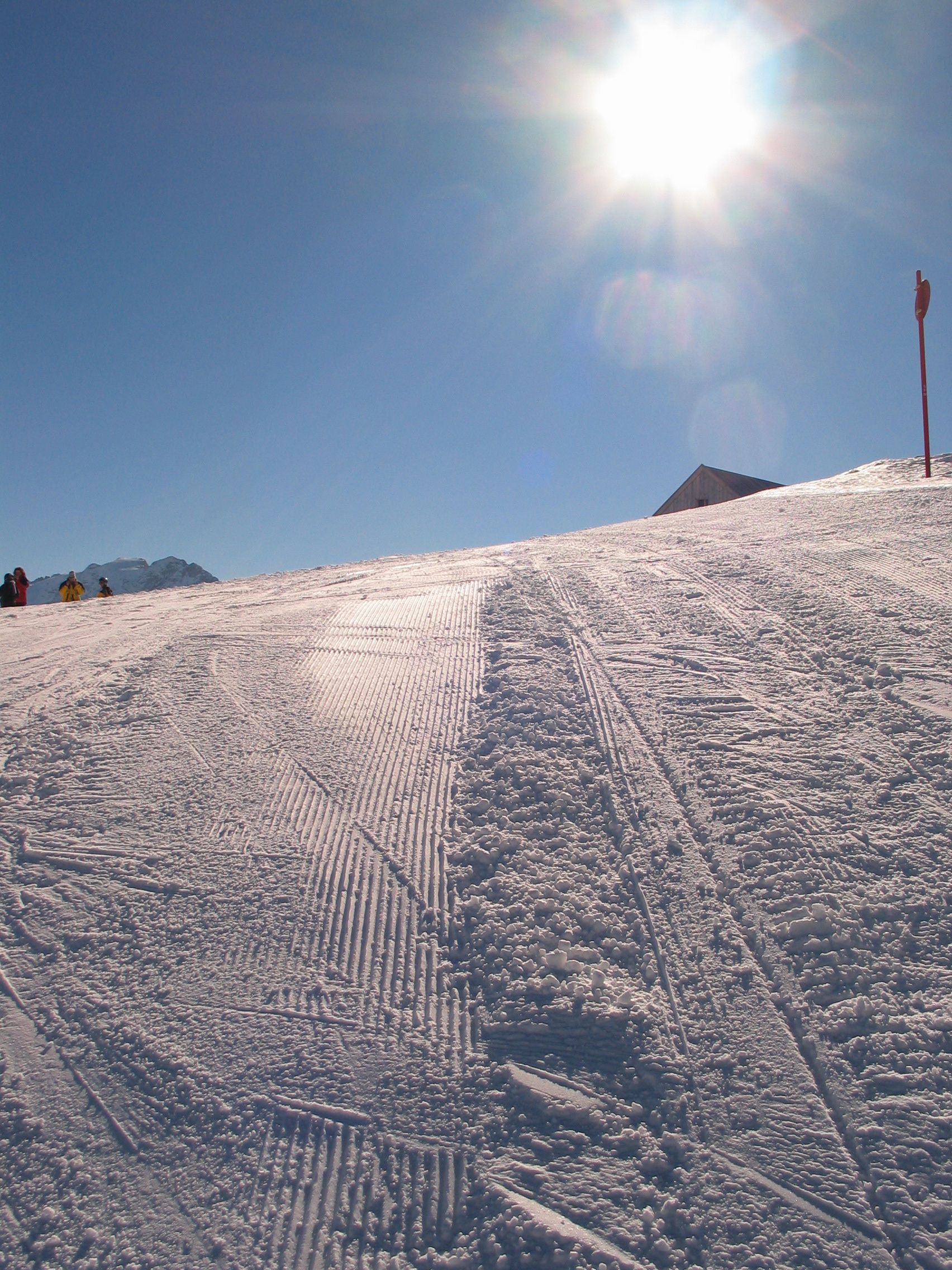 Sommarsnön är så pass mjuk och fin att det inte är några problem med ojämnheterna, men med "slaskrutschkanorna" som blir får man hålla sig till att utnyttja (delvis mycket) begränsade delar av rännans bredd :) Men lösningen på det är enkel!