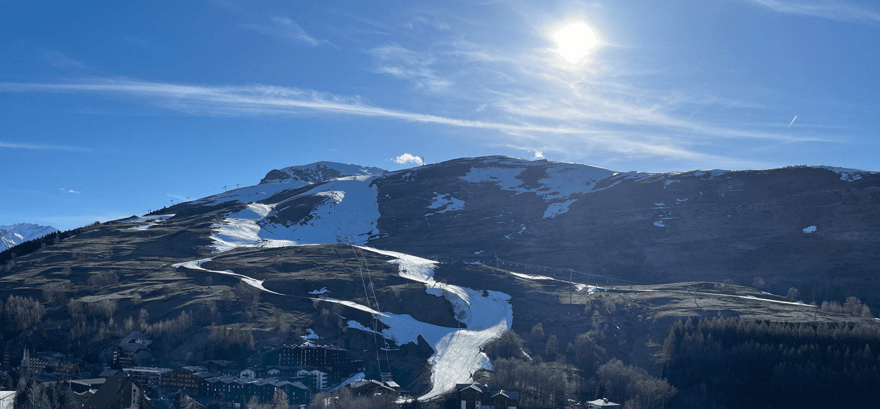 Jag ser flera såna typiska franska skidortshus. Påminner mig om de flesta franska skidorter, men kanske mest Les 2 Alpes?