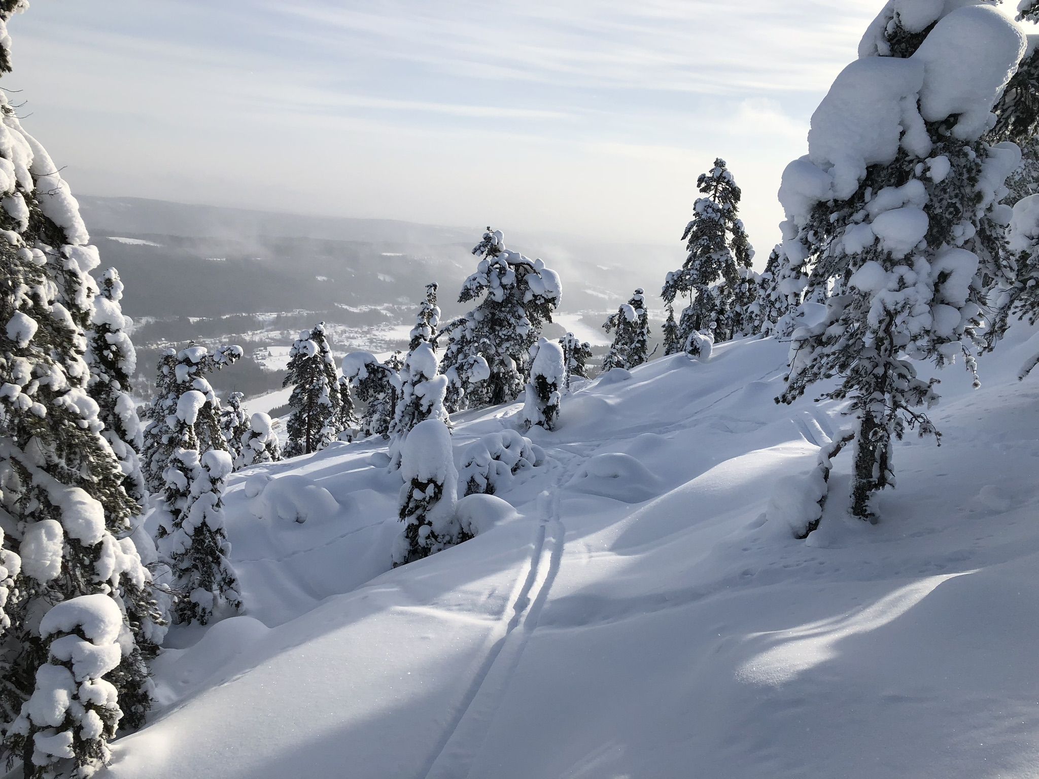 I den här bilden finns flera stycken av något som påminner om en annan skidort. Vad finns det fler av, och vilken skidort påminner de om?