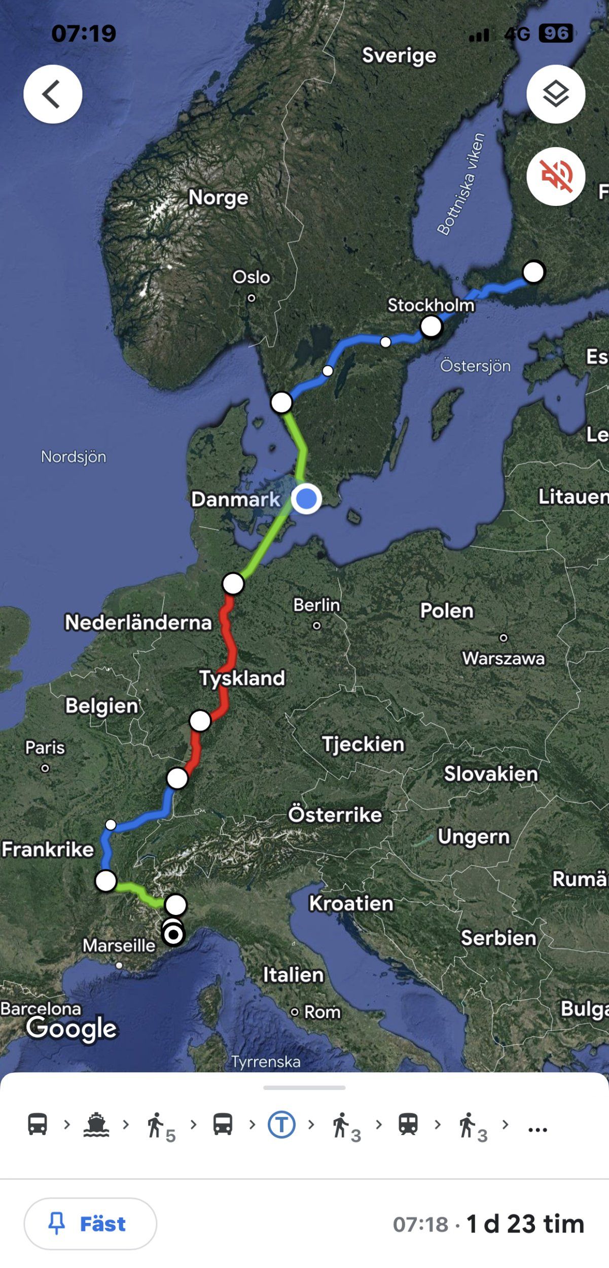 Jag har rest flera gånger med tåg till Marseille/Nizza på 80-talet. Två dygn? Det tar (tog...) minst 2 nätter i Köpenhamn (Istedgaden, Cristiania osv.) innan man hann resa vidare.