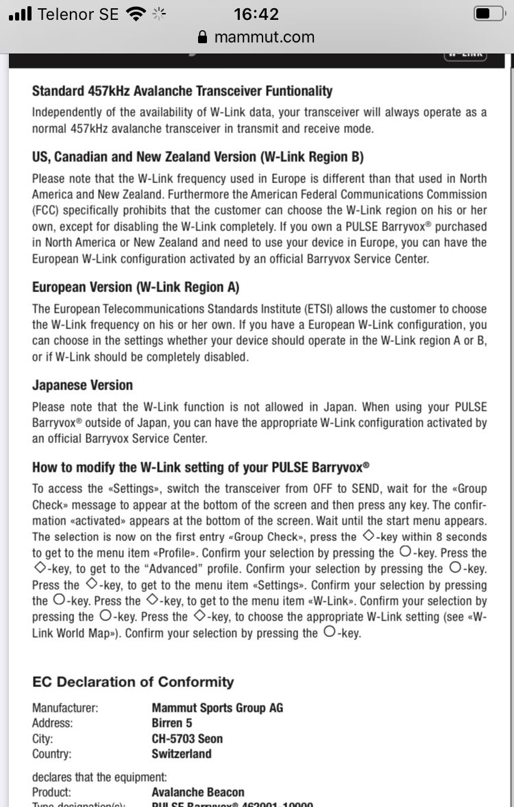 Ni som varit i Japan och tagit med transceiver med W-Link funktion, har ni stängt av den? Enligt instruktionsboken är frekvensen W-Link använder förbjuden i Japan. Enligt butiken jag köpte den i behöver inget göras, någon som vet? Det är en ny Mammut Barryvox jag har.