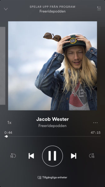 Nu kan du lyssna på Freeridepodden via Spotify. Tretton avsnitt finns med teman som att välja rätt skidor, historien om Andreas Fransson, säsonga på Svalbard, laviner och långa intervjuer med skidåkare som Jon Olsson, Anja Pärsson och Jacob Wester.