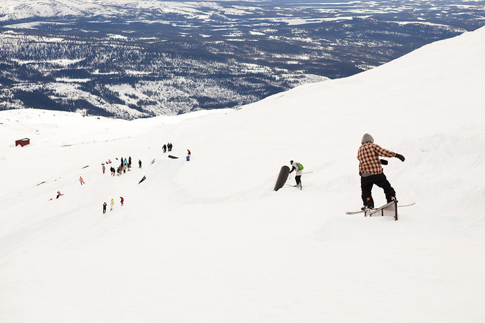 Dag två på Åreskutan är avklarad och det var under en delvis blå himmel som åkarna fick prova på parken som Laffa och Byssa med crew har snickrat ihop.