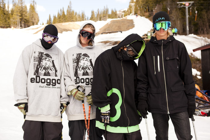 Under fredagen började resan för mig och fotograf Timfält nere i Bräckeparken där vi snabbt möttes upp av Edoggo/Lima-gänget som håller till i Kläppen under vintrarna. De passade på att köra några laps igenom svarta linjen på morgonen innan kickarna blev spåriga. De fick sällskap av ett gäng skid- och brädåkare som även dem letat sig till Bräcke under förmiddagen för att köra lite vårslask i vad som förra året utnämndes till ”Årets bästa park”.