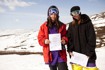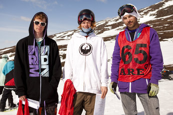 I snowboardklassen plockade den lokala förmågan Benjamin Lestage hem tävlingen följd av gammelfarbror ”Tobben” Johansson. På tredjeplats placerade sig Filip Näs. Damsidans två deltagare, Sandra Dejin och och Michaela Utsi körde båda riktigt fett och imponerade på alla killar som var med och körde sessionen. Tillslut blev det i alla fall Sandra som kröntes drottning för dagen, med Michaela tätt efter sig på pallen.