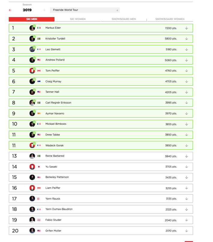 Ovan 12 kvalificerade skidherrar är nu också garanterade en biljett till nästa års Freeride World Tour.