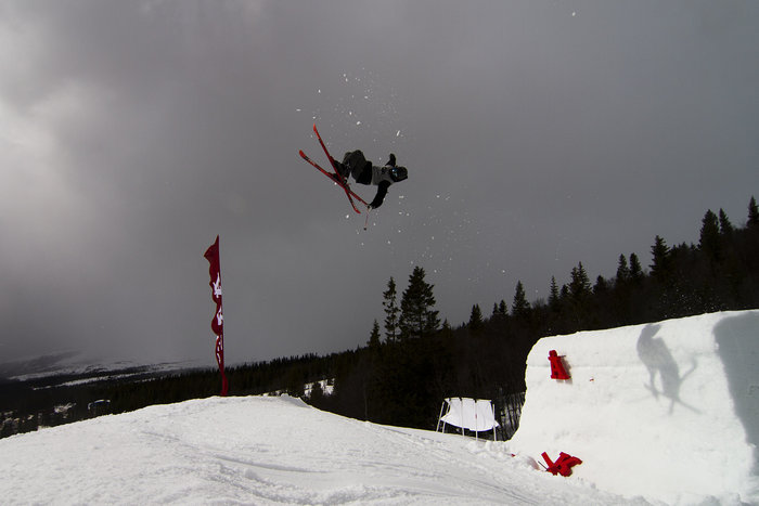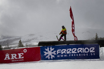 Aprilvädret valde att visa sig från sin allra mest obeslutsamma sida, men trots det var det gott om folk och laddhatten på i Bräckeparken under Freeridehelgens första dag. Bådar gott inför slopestyletävlingen imorgon.