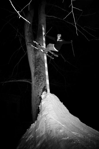 En tree ride kräver egentligen bara lite snö och ett träd. Ändå har man aldrig tidigare sett en organiserad tävling i grenen. Arenan är liten, snygg och publikvänlig. Det enda skidåkaren behöver är fart och mod. Den rödvita plankan mitt emot en ganska hög ramp skrämde nog trots allt en del åkare, 25 anmälda sjönk till 17 vid start.