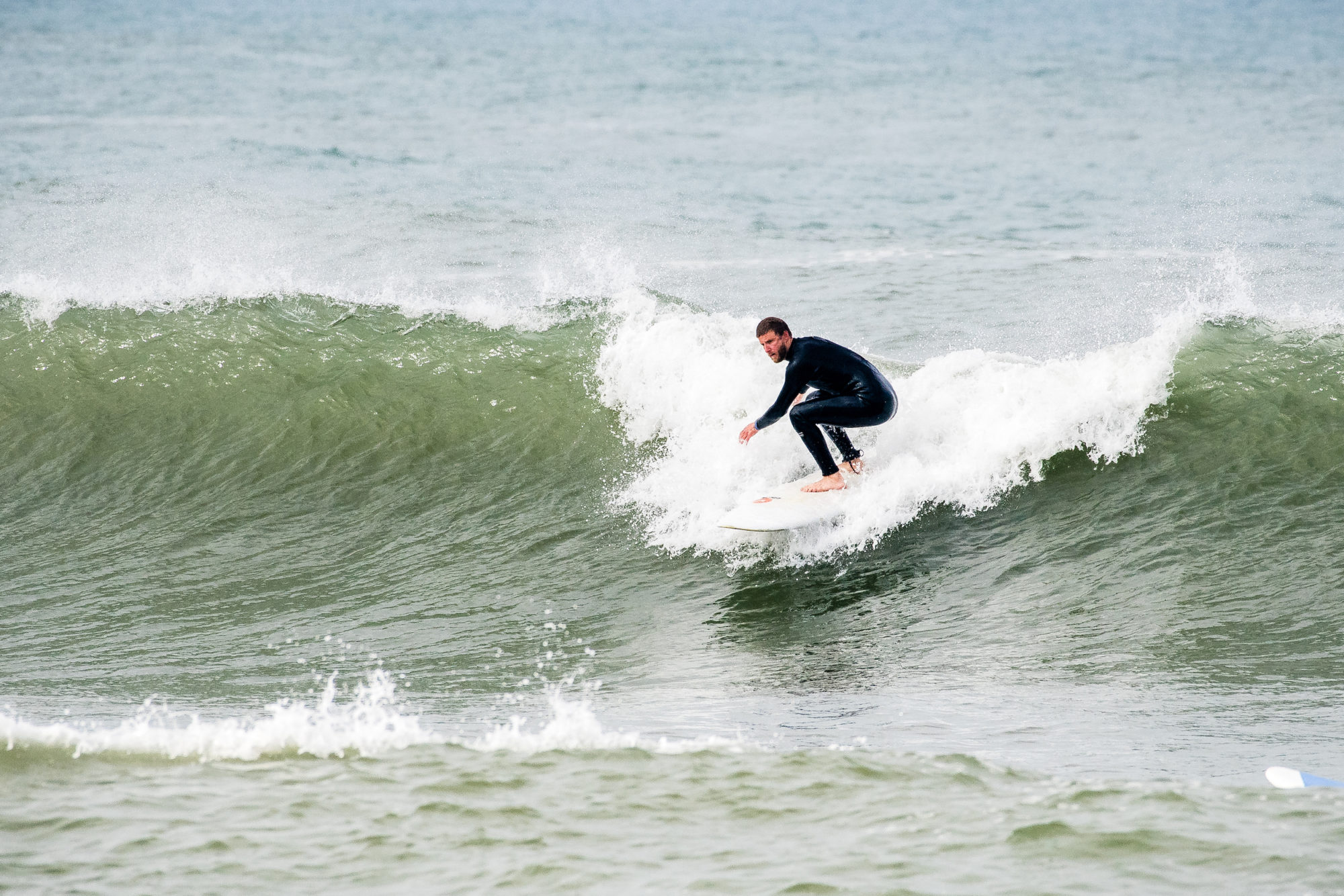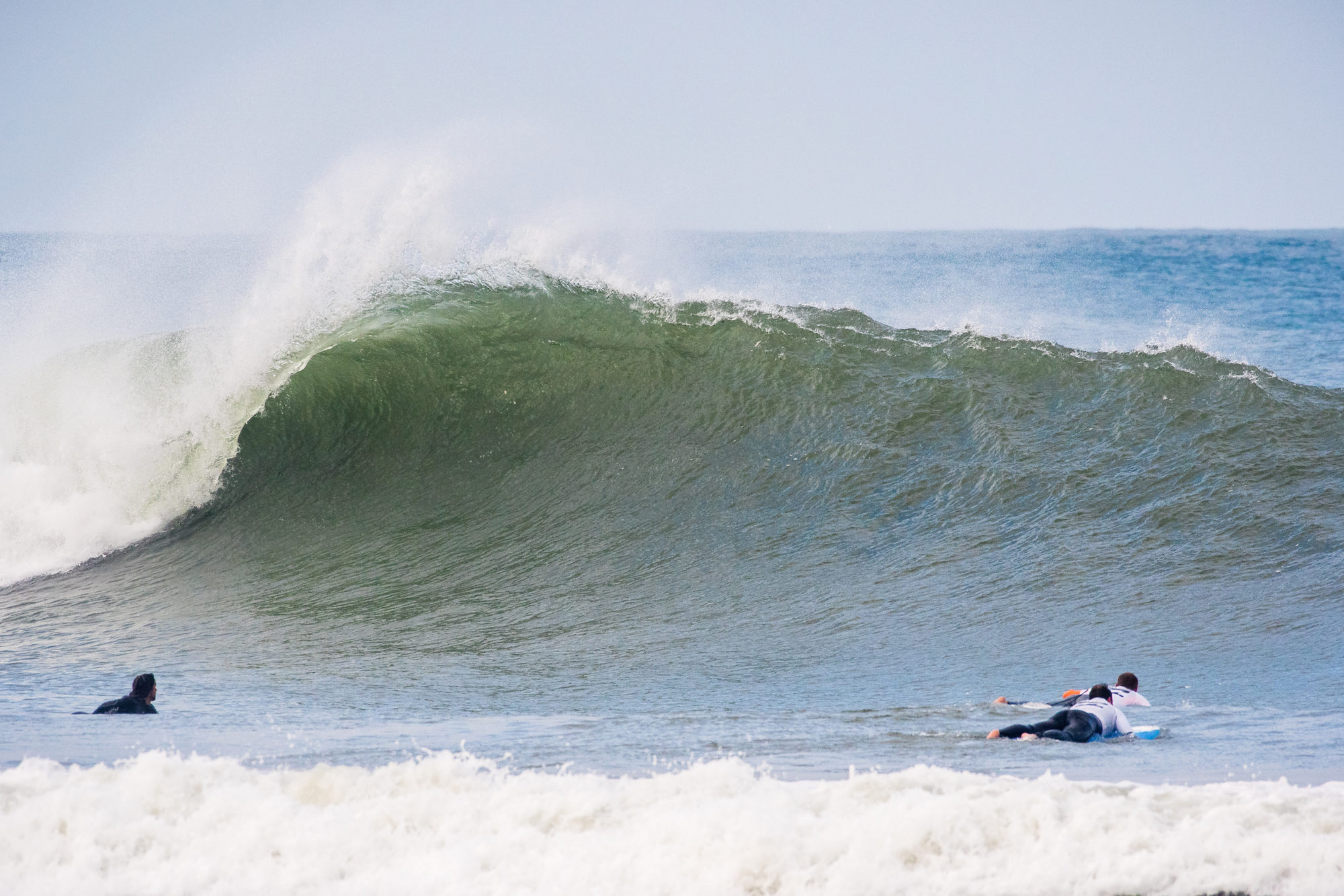 Vi bjuds på offshore och riktigt cleana vågor längs hela den kilometerlånga stranden. Vi paddlar ut med stora leenden på läpparna och surfar lättfångade vågor hela förmiddagen, känslan att glida fram längs vågorna är närmast euforisk, jämförbar med en riktigt djup puderdag.Efter lunch har vågorna byggt på sig ordentligt och vi inser snabbt våra begränsningar. Brädor flyger kors och tvärs och hela eftermiddagen upplevs som insidan av en tvättmaskin. Vitvattnet kastar runt oss i några timmar innan vi beger oss tillbaka mot Ericeira, solbrända, mörbultade, men lyckliga.