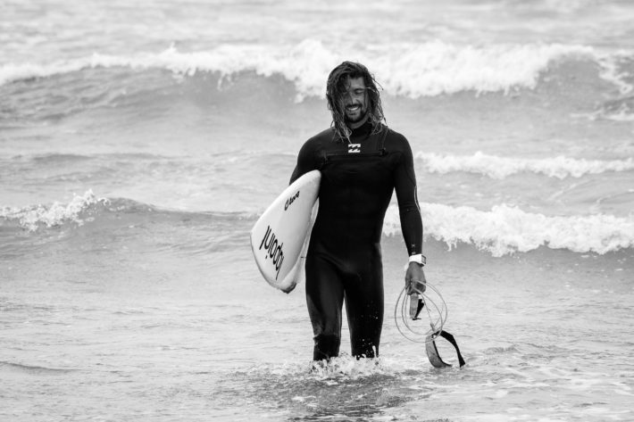 Senare under dagen får vi träffa vår instruktör för veckan, Filipe Luz. En stereotypisk surfare med långt solblekt hår, flanellskjorta och ett leende på läpparna: