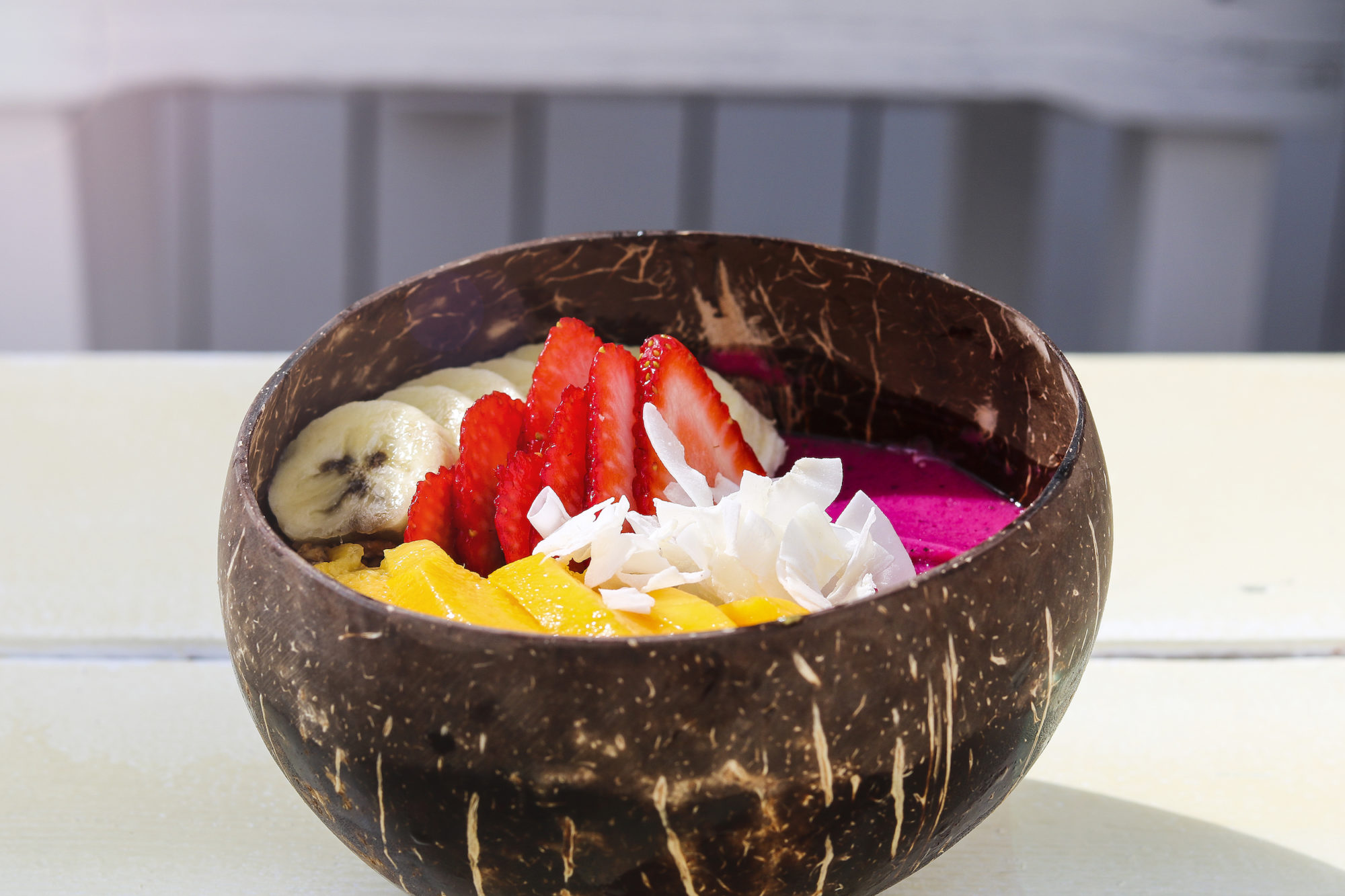 Frukt-bowl, ett nytt begrepp att lägga på minnet. Färsk frukt, smoothie, kokosflingor och diverse sädesslag som komponeras ihop till en hel måltid. Efter flera timmars surf på South Beach är Nalu Bowl’s ett måste för ett par slutkörda armar.