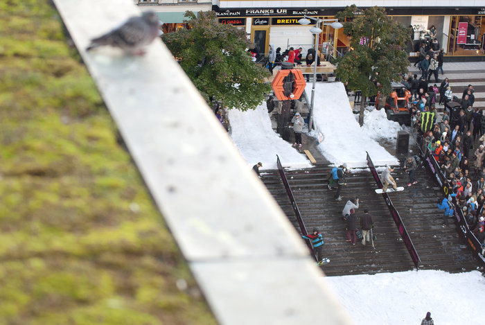 I snowboardkretsar är första helgen i oktober ett stort datum. Det är nämligen då som Frontline Railjam arrangeras i Stockholm och i år hade Sergels Torg vintersmyckats med fem lastbilsflak ishallssnö och 16 meter järnrör. Tävlingen lockade tusentals peppade åskådare, utställare och framförallt – världseliten på snowboard.