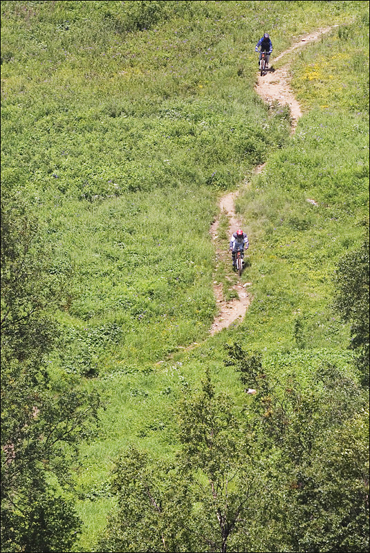 Många nya leder har stakats ut inför sommarens alla aktiviteter men ännu är inte allt i gång. På Fjällängen byggs det fortfarande för fullt och både grävskopor och hantverkare jobbar allt de hinner för att så snabbt som möjligt färdigställa området. Det Skistar framförallt förbättrat till årets cykelsäsong är de enklare gröna lederna. Nu går det att ta sig ned från avstigningen på VM6:an ända ned till kabin på gröna leder och det är viktigt för alla som hyr cyklar och är mindre vana att cykla utför.
