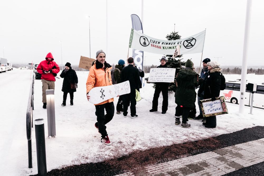 Dagens protestinsats stod POW Sweden för. Under eftermiddagen genomfördes en manifestation utanför ankomsthallen av och med bland annat POW Sweden. På plats fanns en av grundarna, Johan Ahlgren som också är en av medförfattarna till dagens debattartikel på Freeride om flygplatsen.