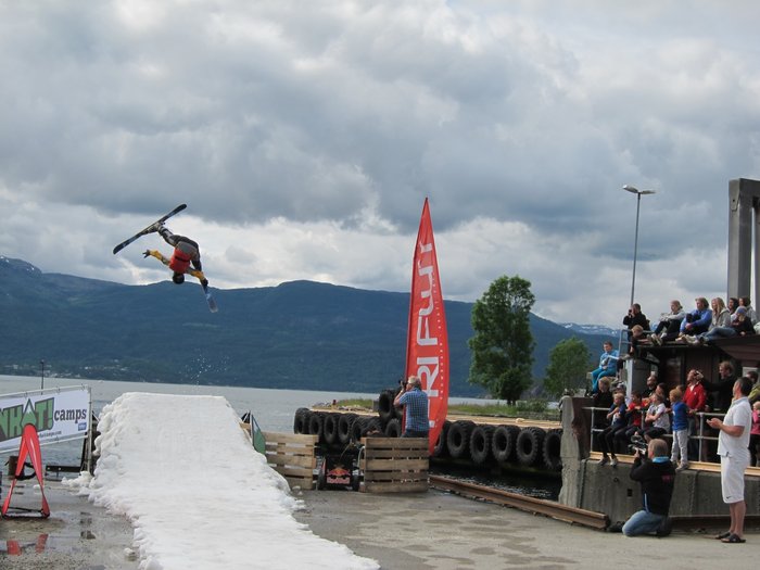 Ett stort lass med snö fraktades från glaciären ned till kajen i Jondal där en kick shapades. Åkarna körde sedan tow-in med vinsch och bjöd på höga luftfärder ned i fjorden inför en jublande publik. Vinnarna av ”Harbour Huckfest” fick bra betalt för sina insatser; bland annat låg det splitternya salomonskidor och snowracers i prispotten.
